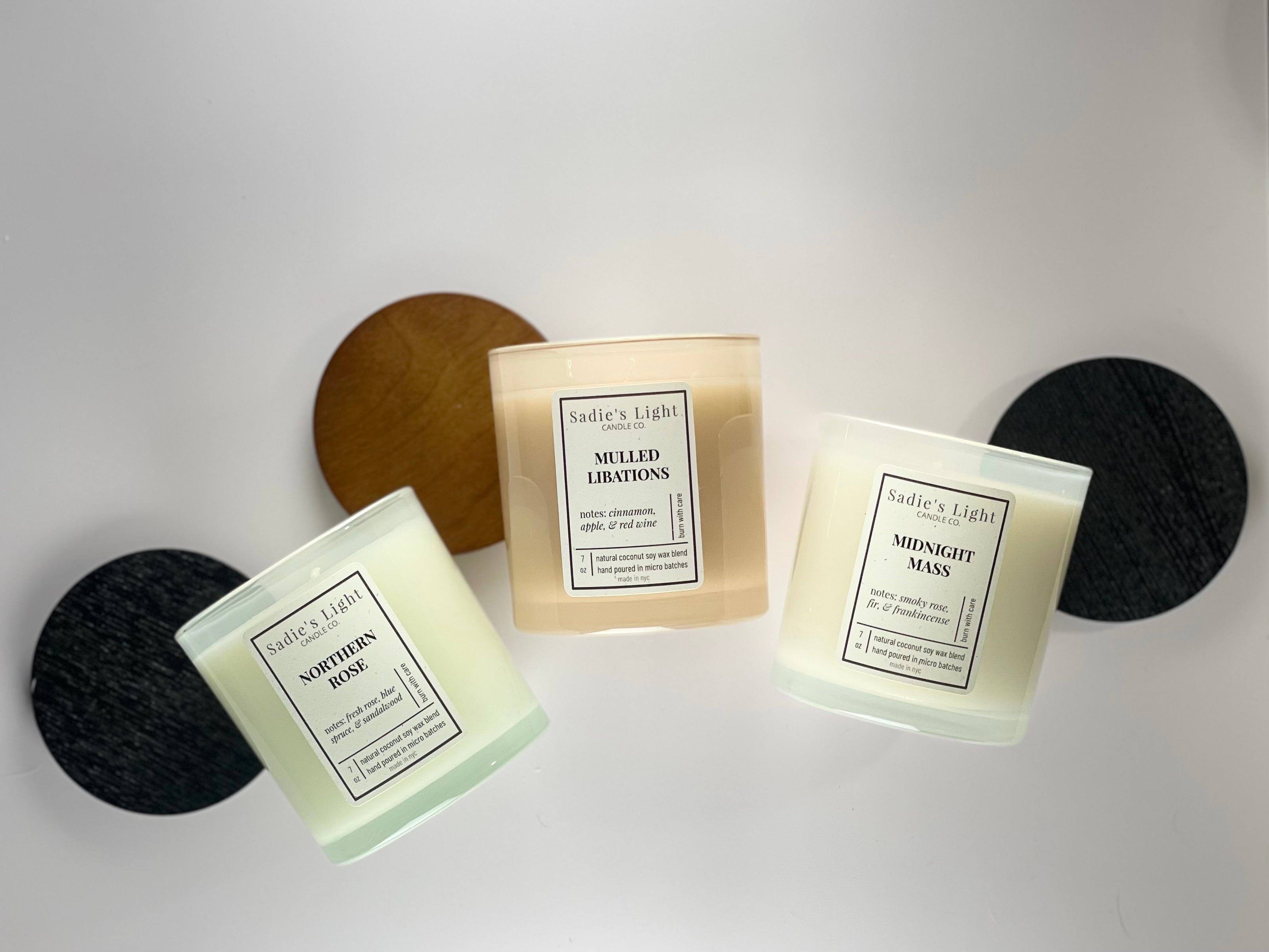 Hand-poured in small batches, Sadie’s Light candles are crafted to bring inviting scents, comfort, and a touch of joy to your daily life.